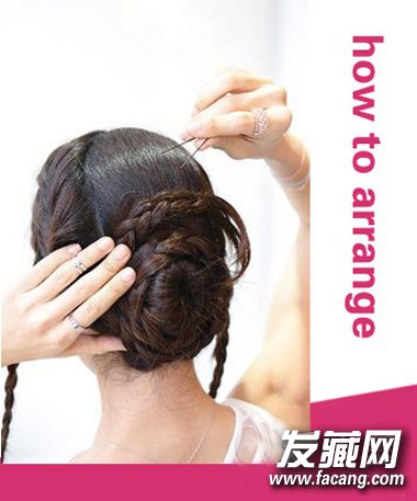 step3:再分别取出两侧的辫子缠绕在脑后。