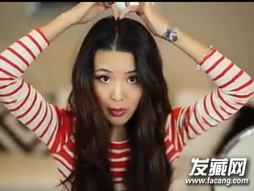 先将头发分区,之后用手指从头顶到后脑勺分出一个Z字形,这样看着会比较自然。