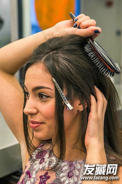 头发前端留出中分的缝隙,然后用梳子梳直头发,接下来分出资格区域。后面接下来需要扎发,所以脑后的两撮头发需要等量,剩下则是散落在两侧的头发。记得用夹子留出头帘发丝的发量。