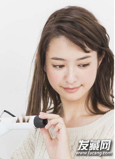 step 1:头发侧分之后,用卷发棒将直发变卷发,营造蓬松感。注意发尾向外卷曲。