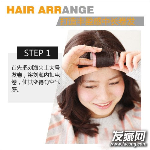 STEP 1:首先把刘海夹上大号发卷,将刘海内扣电卷,使其变得有空气感。