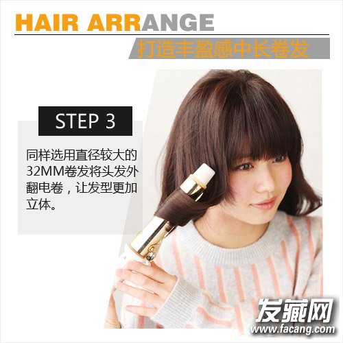 STEP 3:同样选用直径较大的32mm卷发将头发外翻电卷,让发型更加立体。