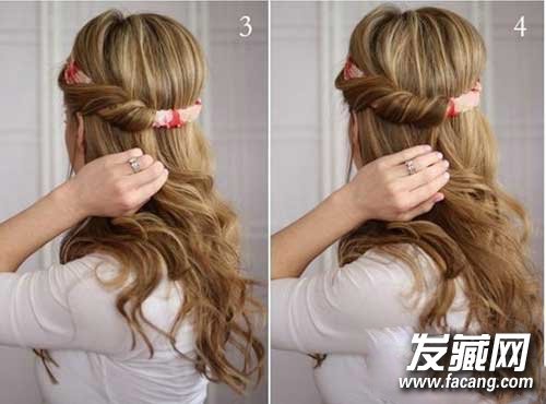 左边右边一样的方式将发带与固定的发量缠绕着,注意不要抓太大把头发,免得露出头皮就不好看了。