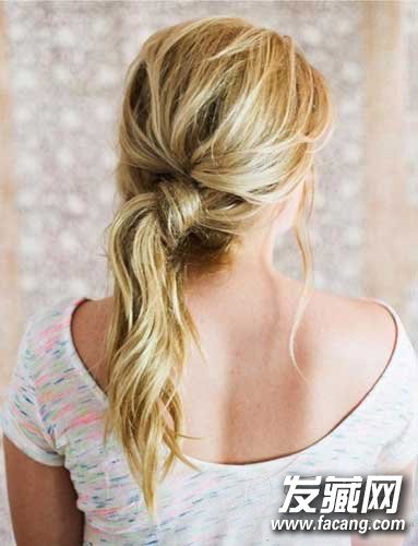 最精髓的是乱乱抓取的方式绑住马尾束,可以营造乱中有序的美感哦。