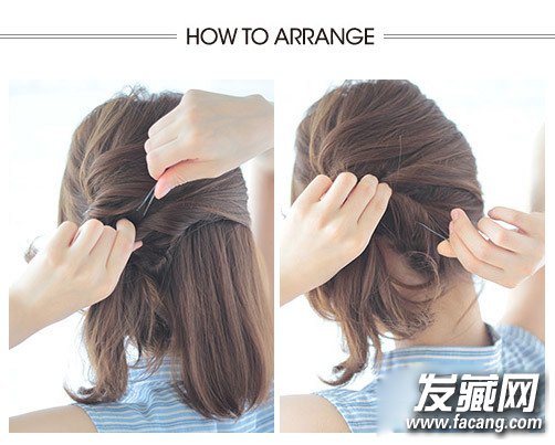 step3:脑后的头发按照从上向下的顺序扭转成发辫后固定。