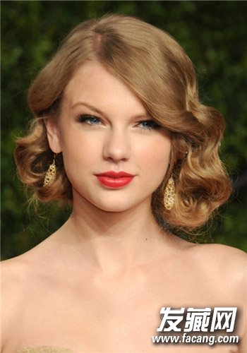 霉霉这款30年代的经典复古手指卷Vintage发型绝对让人眼前一亮。将自然蓬松的卷发轻轻地固定在两端以及后面,看似随意,却散发着慵懒的迷人气息,同时拢在后面大量卷曲发令泰勒看起来非常典雅迷人。