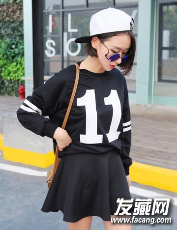 ,中分短直发简单干练,搭配卫衣变身帅气boy风,运动风造型动感十足。