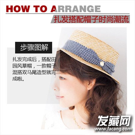 扎发完成后,搭配田园风草帽,一款帽子混搭双马尾造型就完成啦。