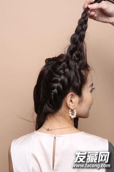 Step2:将所有头发都编到发辫中将后发的所有头发均逆向打造蝎子辫,一直到发尾。