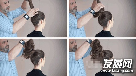 STEP 4. 这是最重要的步骤,将马尾的发束拉起,由发尾向头皮用手指逆向抓蓬,由于刚刚上过定型液,所以头发会因逆抓而蓬起。