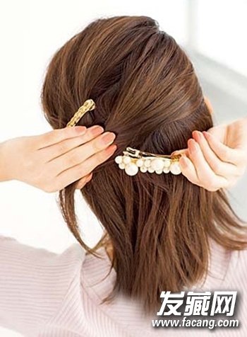 step2:取出上半部分头发扭转后用发夹固定起来。