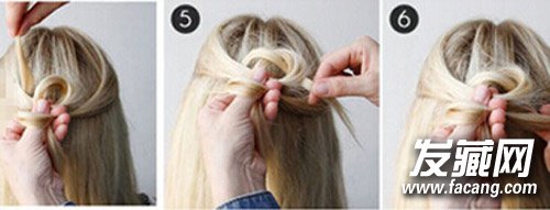 step4、B头发如图从A头发里面穿上去,在小圈左侧位置往上穿;