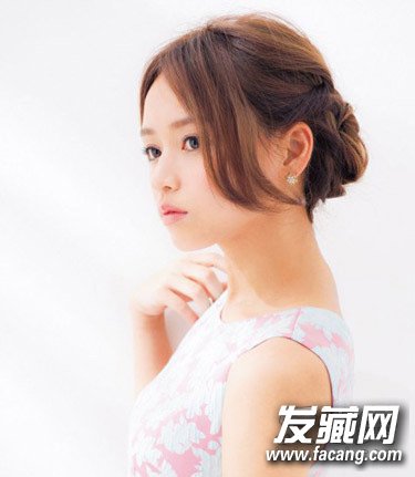 侧分长刘海烫出微卷的波浪弧线,修饰出完美的侧颜。编发固定在脑后,清爽而不失优雅甜美。