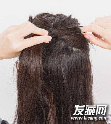 中分长刘海烫出马尾发型 2款简单扎发图解(4)