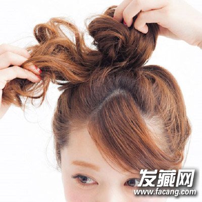 step1:将长发绑成高耸的马尾后扭转成花苞头。