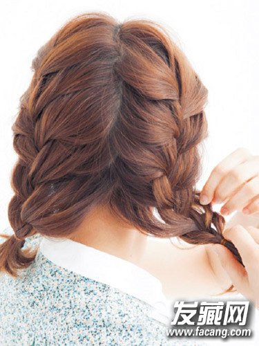 step1:将头发分成左右两部分,从头顶开始编发并不断并入下方的头发。