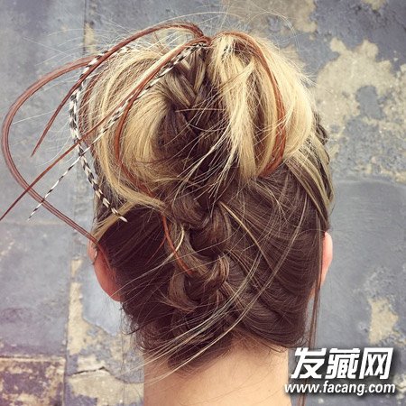一款个性十足的编发发型,好像龙虾触角一样的造型很显夏日感,紧致编发和浪漫扎发结合,从背后看很拉风的一款发型。