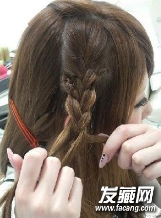 将放下来的一边变成麻花辫,不宜过紧,如图所示。