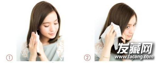 STEP 1:先用纸巾或者专用的干发巾拭去头发表层多余的油脂。