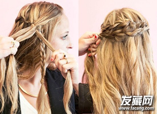 双层麻瀑布辫编法图解 DIY森女风编发(5)