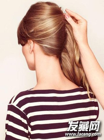 2、在发顶用前额刘海做出蓬松的效果,并固定在“发夹线”上,这样可以让整体造型更加饱满立体。