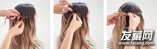 6、接着在右手边重复这个编发过程,让左右两侧编出一样的形状。