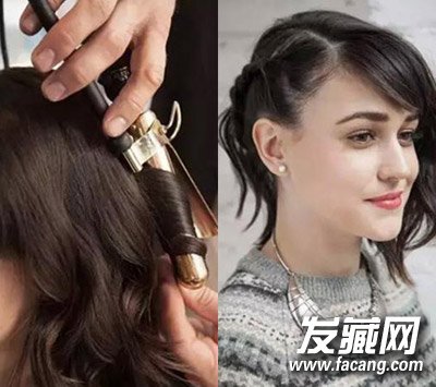 Step 3:用卷发棒将左侧的头发分几缕进行包裹卷曲,营造蓬松的波浪卷,并将辫子的尾部藏匿于卷发之下。