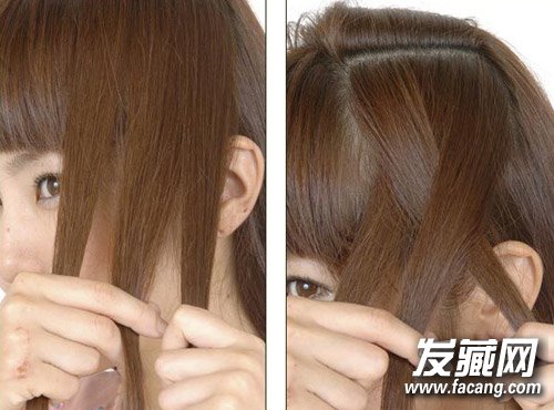 STEP1:头发分开左右两侧,选择其中一面靠近发际线的位置挑出一束头发,把它平均分成三股小辫子。