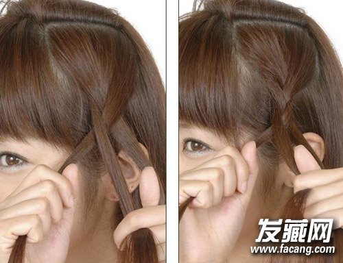 STEP3:紧接上一步,将交叉编织的头发拉紧,将头发编成麻花辫。