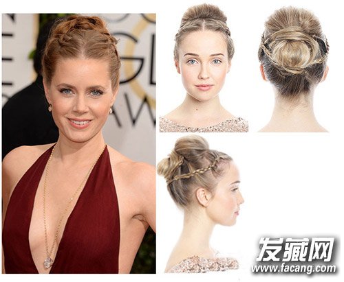 这款编发高髻将所有头发全部后梳,露出MM明艳的五官,从正面看高贵典雅,从侧面看多情浪漫,一起来学一学吧。