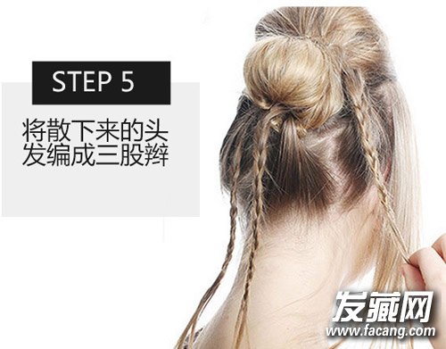 step5:将之前留下来的三束头发编成三个辫子。