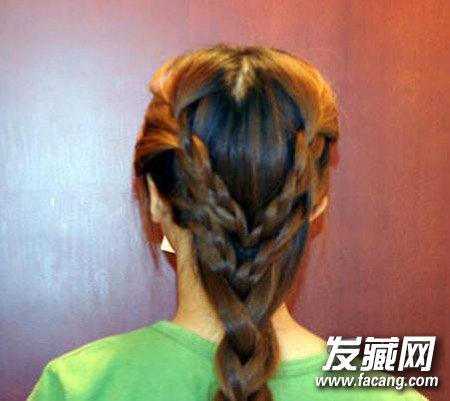 6、将剩下所有的头发编三股辫,也就是麻花辫,变成一条辫子扎好就行。