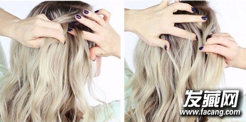 1、首先从最贴近发际线的地方选取两股头发开始进行编发。