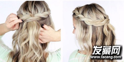 5、交叉出固定,然后将剩下的辫子解开或是藏在头发里。这样一款别具个性的公主头就完成了。