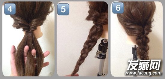 2、将剩下的部分变三股辫,发尾固定,然后将三股辫拉扯蓬松,这样一款好看的发型就完成了。