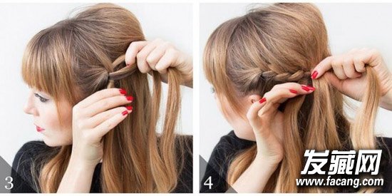 4、将新加的一股头发融入三股辫之中,继续向脑后编织。