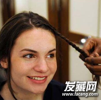 step 3:将两侧的发丝编织成可爱的小麻花辫。