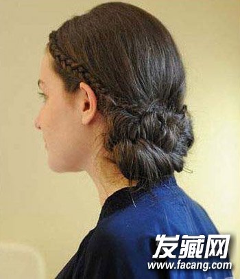 step 5:将脑后扎成的鱼尾辫盘成简单的发髻,这款优雅端庄的鱼尾麻花辫