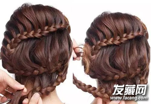 5、编到最后把剩下的头发全部编紧,然后固定到头发的最下面,固定成圆形就可以了,最后整理一下头发的松紧度,把碎发都收干净。