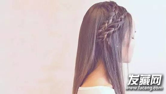 1:先将将头发梳理好,从头顶取一束头发并将头发分成四份,从头顶开始往下编三股辫。