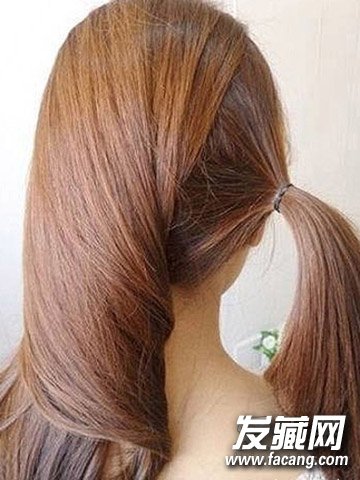 Step 2 将一侧的头发梳成低马尾,另一侧用卷发棒卷出弧度。