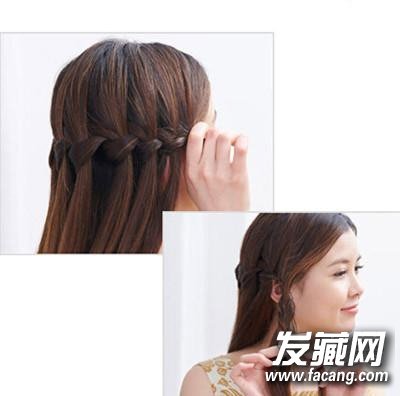 步骤三:头发编到右侧位置时,将剩下的头发编成一条麻花辫。