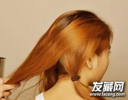 步骤一:将头发分成三等分,右边的一层扎成一根马尾。