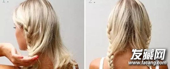 先将头发粗略地分成两部分,从接近耳朵开始编麻花辫,并向旁边抽拉头发,直至编到发尾,两侧都是;