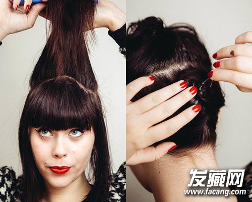 step 2:将下方的头发绕成小包包头在用黑发夹固定。
