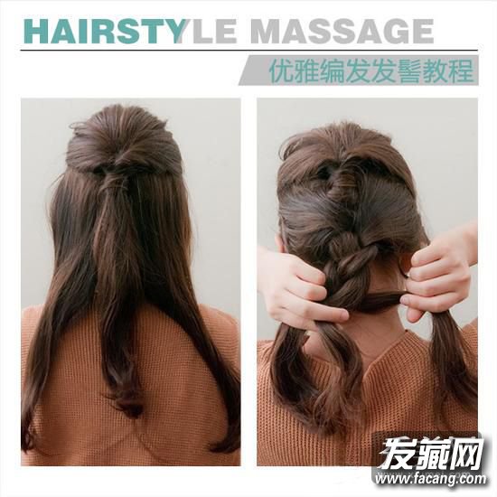 step7-8 step7:将下面的头发分成两部分,加上马尾也就是有三束头发。 step8:在后脑中间用那三部分的头发先编两下鱼骨辫再编成麻花辫,知道发尾。