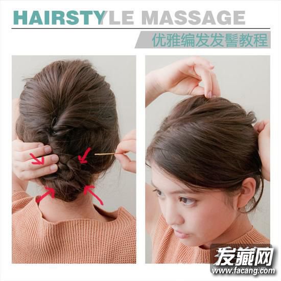 秋季低发髻盘发教程 秋冬穿得多也显瘦(6)