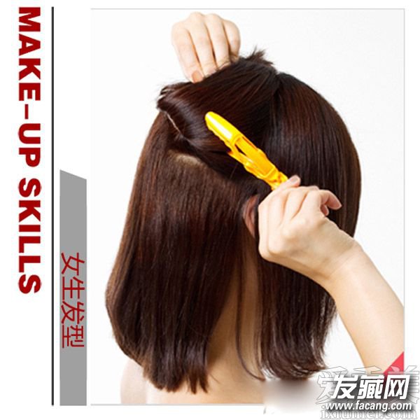 Step 6 最下层的头发夹好后,我们将上层的头发放下一部分。