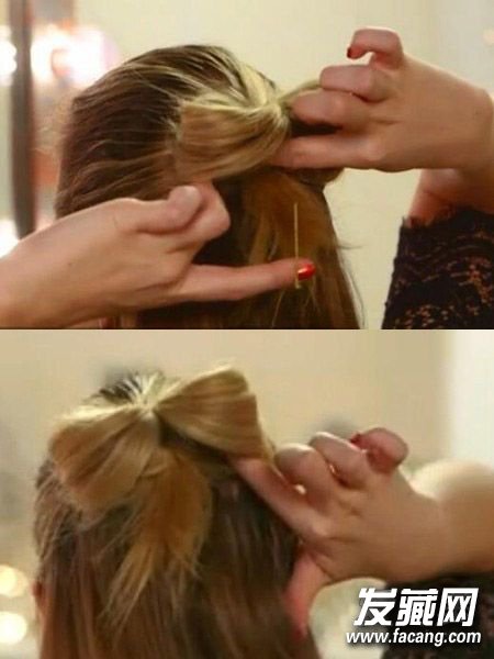 6、再用食指扩充两边发髻的轮廓,让蝴蝶结在视觉上更加丰满。