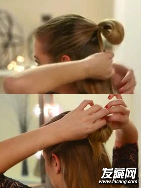 3、在扎发鬏的过程中,切记留下一部分的发尾在发鬏外。